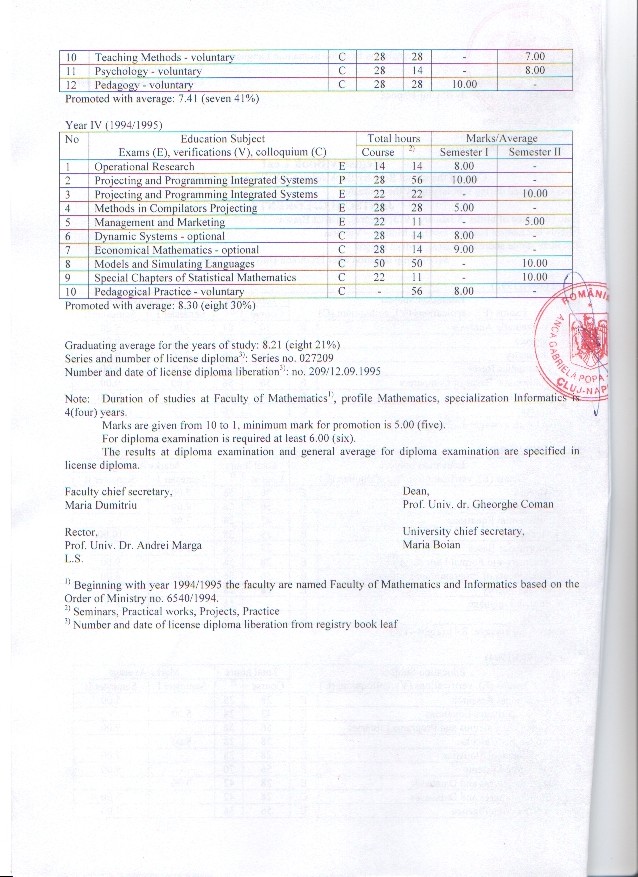 1991-1995: Babeș-Bolyai University Cluj-Napoca,
